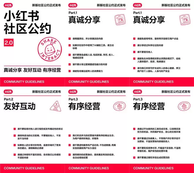 昨天,小红书正式上线《社区公约 2.0》,对社区内容、互动行为及商业经营提出更明确的倡导方向,并首次将原有社区公约与商业公约合并,形成覆盖内容、互动与经营的完整规范体系。