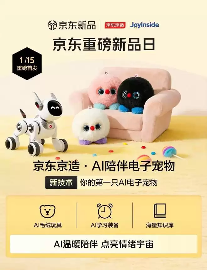 目前,京东自研 AI 玩具系列已在京东平台销售,覆盖儿童启蒙、情绪陪伴、长者关怀等家庭场景。