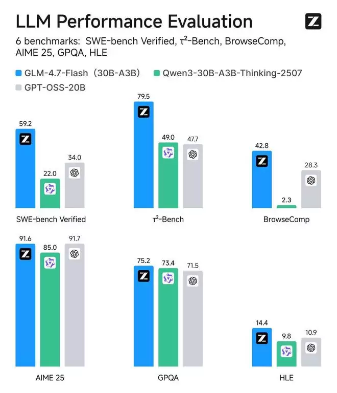 1月20日,记者从澎湃新闻获悉,智谱旗下模型GLM-4.7-Flash已正式发布并开源。作为一个融合了混合专家思想的模型,GLM-4.7-Flash总参数量为300亿,激活参数量则为30亿。作为同尺寸类别中的顶尖水准模型,它为轻量化部署提供了一个兼顾性能与效率的新选择。即日起,GLM-4.7-Flash将替代前代GLM-4.5-Flash,在智谱开放平台BigModel.cn上线,并供用户免费调用。(澎湃新闻记者 范佳来)