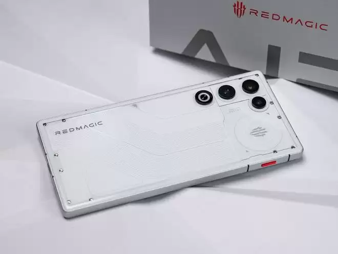 备受好评的透明设计风格,此次也被引入红魔11 Air之中。外露的螺丝与拼接式模块,营造出强烈的赛博朋克高科技感;机身表面覆盖一块2.5D全曲面玻璃,边缘采用微曲过渡设计,与白色边框形成视觉呼应。实测显示,玻璃表面具备出色的抗指纹能力,清理也十分便捷,只需用手指划拉两下就能清除痕迹,让亮面设计在保持高颜值的同时兼顾实用性。
