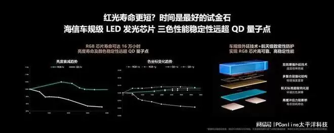 面对行业中关于RGB芯片寿命、光晕控制等问题的讨论,海信在发布会上以实测数据作出了回应。