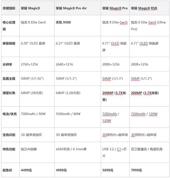 荣耀Magic8四款机型怎么选?4499元起参数全面对比