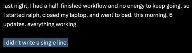 前一晚,Damian工作流干了一半,实在没力气弄了。所以,他启动了Ralph,合上电脑,直接睡觉。