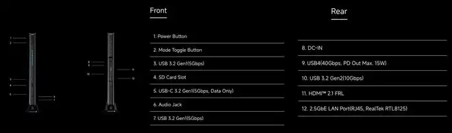 此外,这款迷你主机还提供了 SD 卡插槽、USB-C 3.2 Gen1、USB4、HDMI 2.1以及2.5G 以太网口等丰富接口。其准系统版本售价为1359美元,32GB+1TB 版本的售价则为1679美元。
