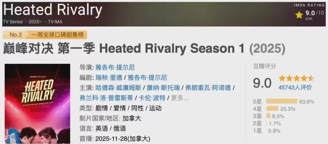 今天推荐一部争议不小、但一旦点开就很难停下来的剧——《巅峰对决》。上线后口碑和热度一起起飞,豆瓣、IMDb评分都稳定在9分左右,直接被不少海外媒体称为现象级爆款。故事发生在职业冰球的顶级联盟。这里不