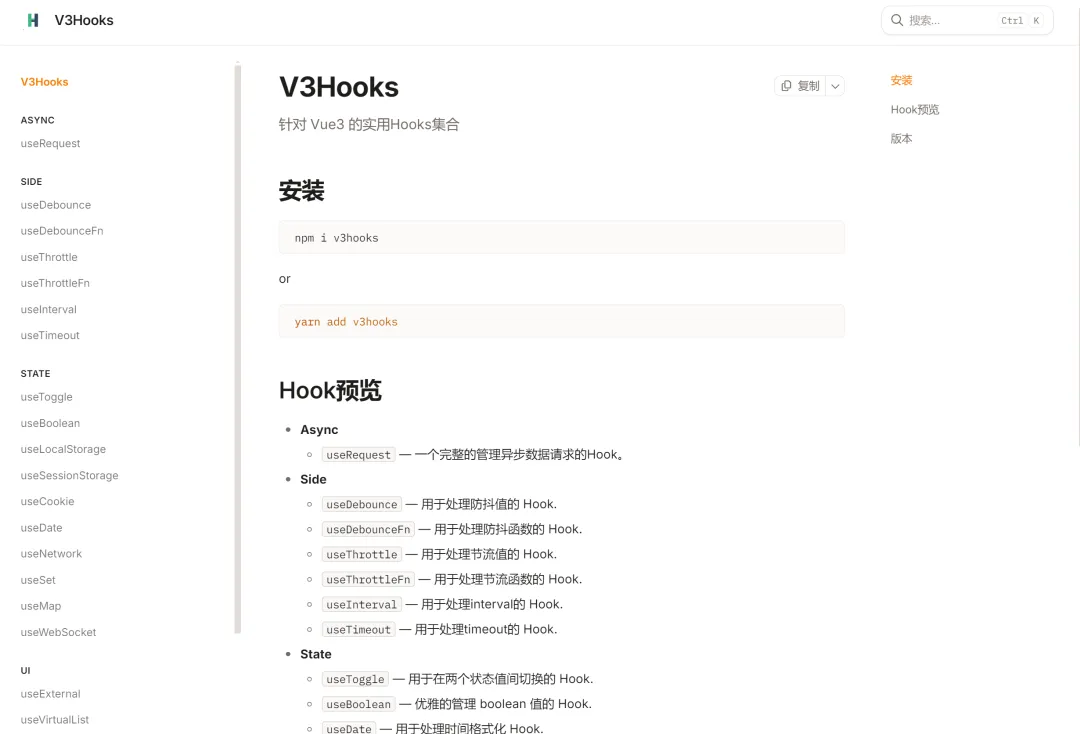 4. V3Hooks:极致轻量化,小项目的不二之选