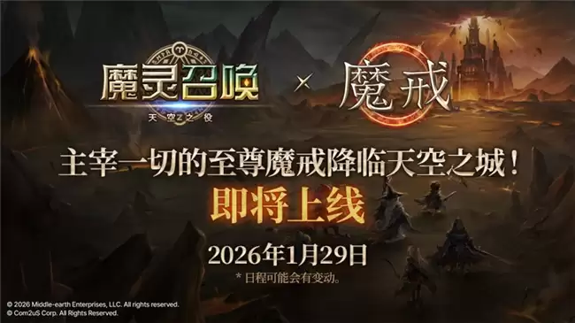 《魔灵召唤》将与传奇IP《魔戒》展开联动,版本更新已定档1月29日,预告视频率先发布。