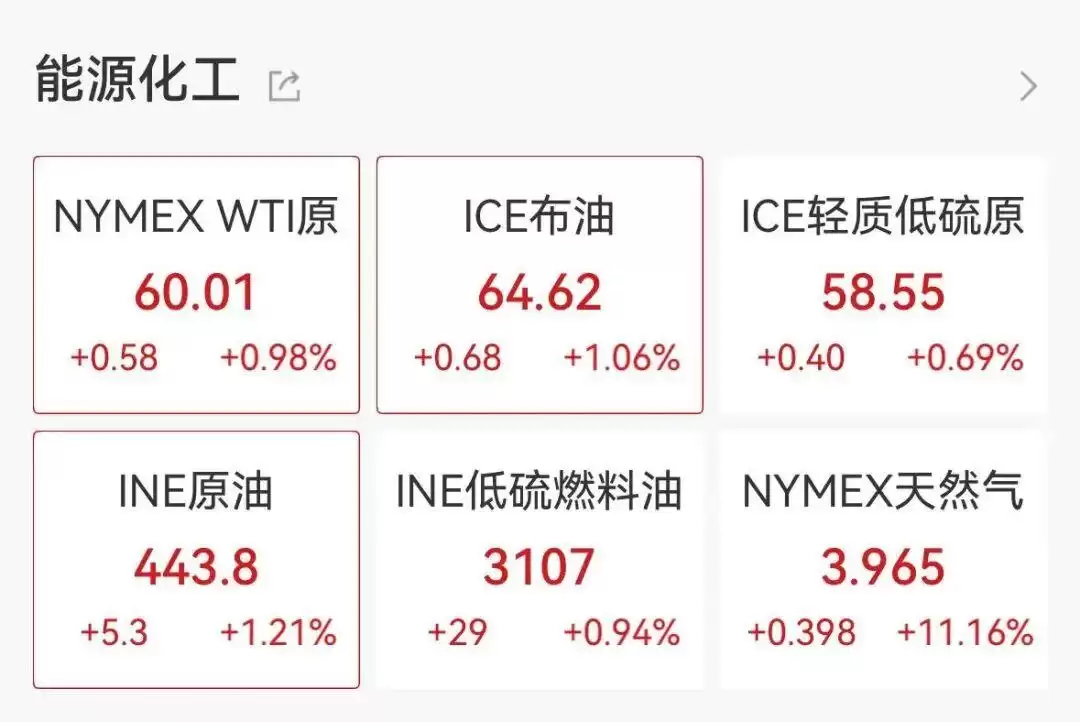 WTI原油期货向上触及60美元/桶关口,最新报60.04美元/桶,日内上涨1.18%。布伦特原油期货涨幅扩大至1%,报64.621美元/桶。