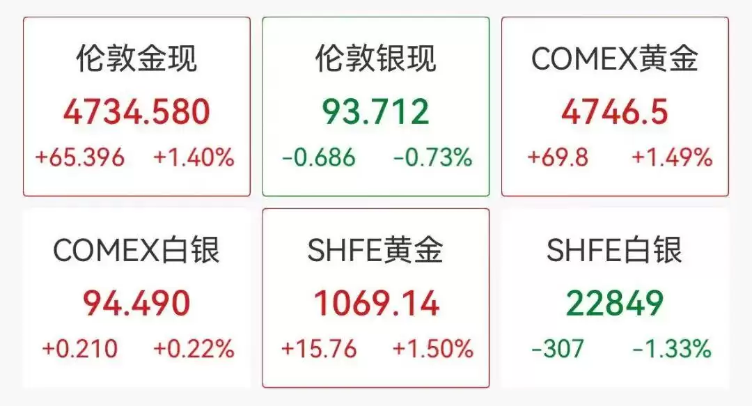 商品市场方面,现货黄金短线走高。现货白银快速走低,现跌1%,盘中一度涨1.5%创下历史新高。源达信息证券研究所所长吴起润对21世纪经济报道记者表示,地缘政治风险增加,多国政府和个人投资者都在增加对黄金等避险资产的配置。从中长期看,金价涨势依旧可期。道富投资管理公司黄金策略主管Aakash Doshi称,整体趋势依然稳固,金价在2026年突破每盎司5000美元的可能性已不再渺茫。