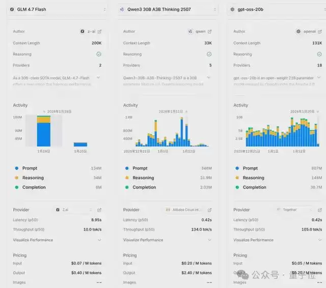 与同类模型相比,GLM-4.7-Flash在上下文长度支持和输出token定价方面具备一定优势,不过其响应延迟和吞吐量仍有进一步优化的空间。