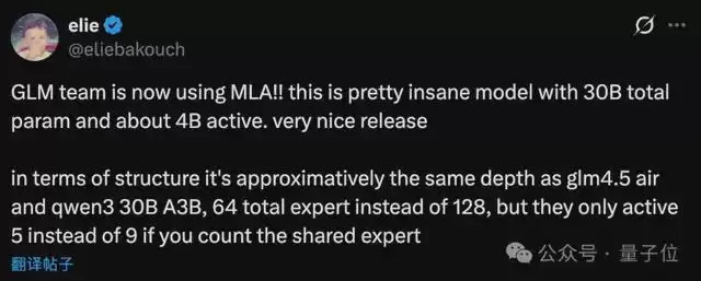 有开发者注意到了一个关键的技术细节:智谱团队这次首次采用了MLA(多头潜在注意力)架构。这一架构此前由DeepSeek-v2率先应用并验证了其有效性,如今智谱也跟进了这项技术。