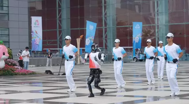 在第十五届全国运动会火炬传递现场,全球首款5G-A人形机器人“夸父”作为“0号火炬手”,手持1.6千克的火炬,顺利完成从深圳市民中心至莲花山公园路段的火炬传递任务。