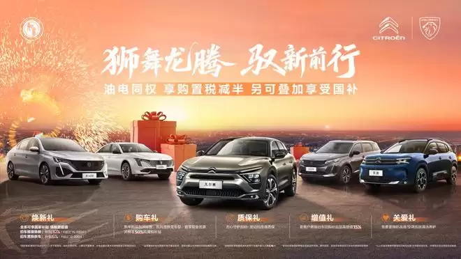 本次推出的购车权益涵盖多方面,有焕新礼:全系可享国家补贴+焕新更超值;旧车报废换新:补贴10%(不超过15000元);旧车置换新车:补贴6%(不超过13000元);购车礼:新年购买东风标致、东风雪铁龙全系车型,直享现金优惠及另畅享50%购置税补贴;质保礼:五星守护加码——发动机终身质保承诺;增值礼:老客户置换旧车回购补贴至高增值15%;关爱礼:免费更换防冻液/空调系统清洗养护。