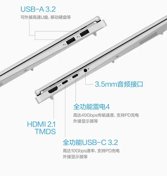 参数及接口大体同上,均采用80Wh电池,重量均为1.39kg,厚度均为17.9mm,触控板具体尺寸暂未公布。