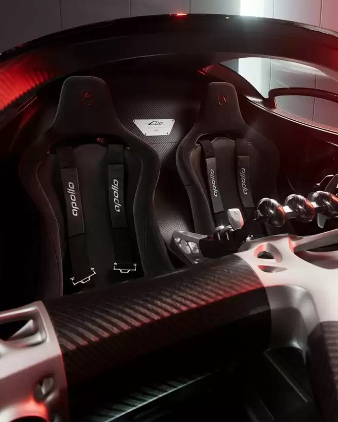 由于无需通过公路车辆的安全法规认证,Apollo 的设计师得以彻底释放想象力,打造出比帕加尼或科尼赛克更为狂野的外观。车辆内部同样延续了这种极简与硬核的风格,剥离了所有非必要元素以展示原始的机械结构。