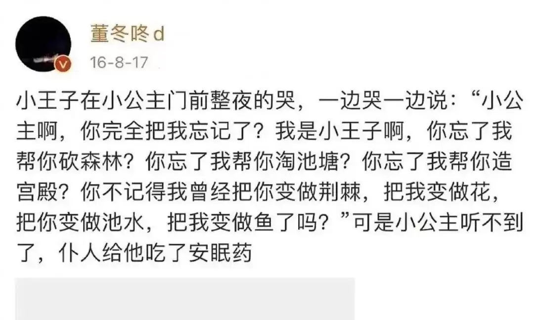 那条“小公主不理小王子”的博文,如今看来依旧甜意满满。那个时期,又多金又专情、带着恋爱脑的“霸总”可不多见。