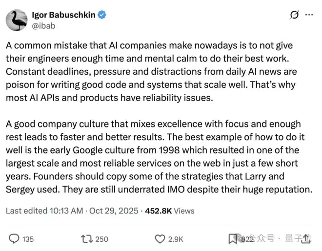 而他cue到的xAI联创之一,Igor Babuschkin(伊戈尔·巴布什金)在去年离职后,也公开吐槽过: