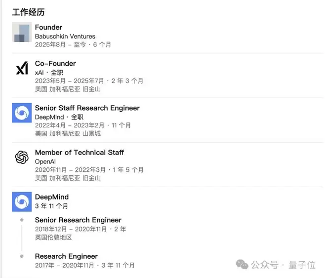 这是继Igor Babuschkin(25年8月)、Christian Szegedy(25年2月)、Kyle Kosic(24年4月)等大佬离职后,又一位离开的xAI联创。