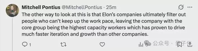 马斯克的公司最终会筛选出那些无法跟上工作节奏的人,留下的核心团队则是那些工作能力最强的成员,这种做法已被证明能够推动比其他公司更快的迭代和增长。