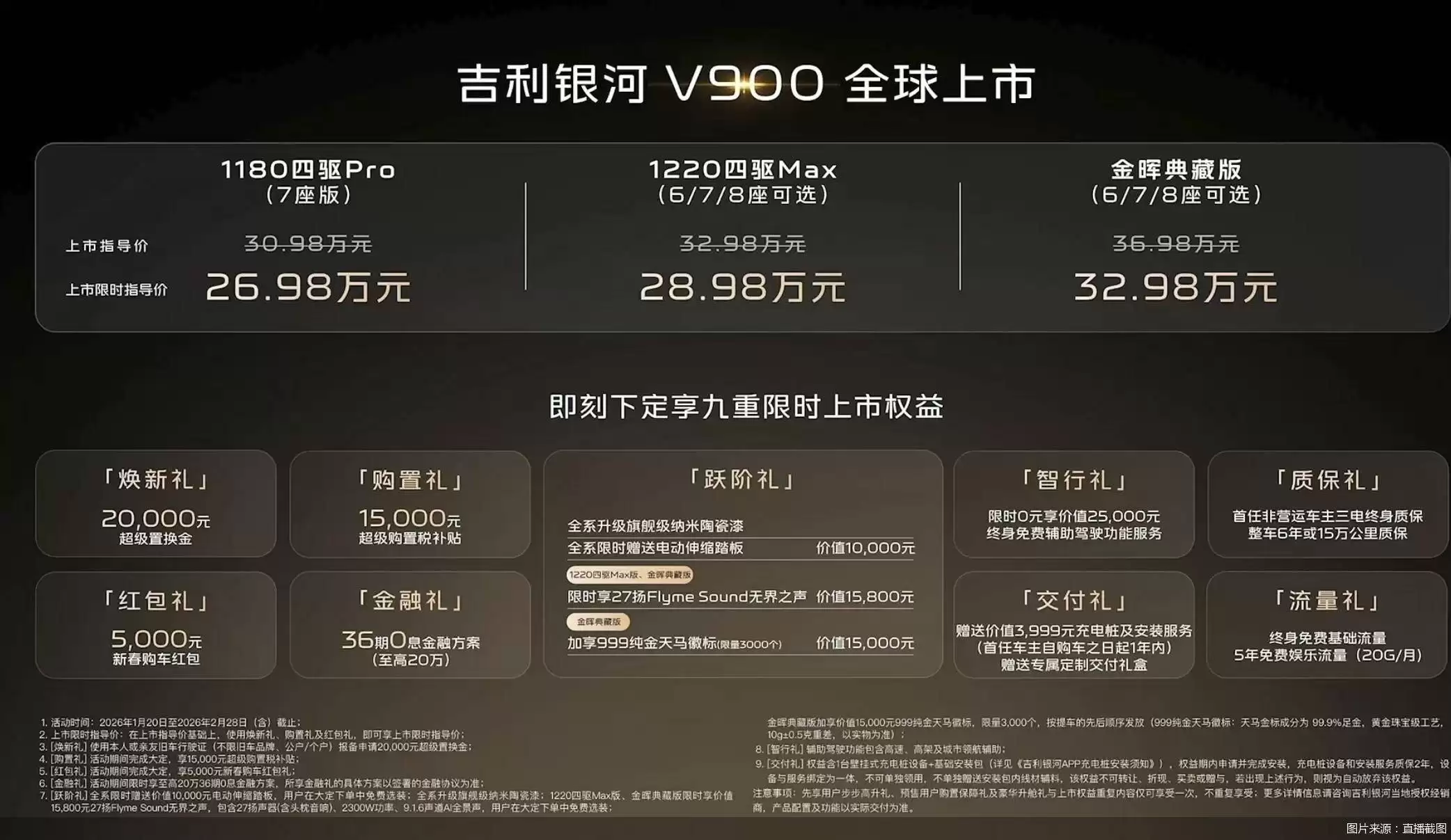 如今,家庭出行场景日益丰富,对车辆的需求也变得更加多元化。正是在这样的背景下,一款专为家庭用户打造的全新MPV——吉利银河V900正式推向市场。新车此次共推出三款配置,最新的限时指导价区间设定在26.98万元至32.98万元,为追求品质的中高端家庭用户带来了一个值得关注的新选择。