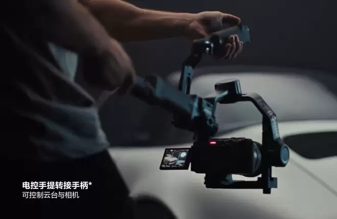 在使用体验上,DJI RS 5支持全新的原生电控手提转接手柄,可实现单手操控,让低角度运镜变得便捷省力。同时,用户还可通过手柄上的摇杆及按键控制云台与相机,解锁更多创意拍摄方式。不仅如此,DJI RS 5还在屏幕上新增了Z轴稳定指示器,能在拍摄中实时反映Z轴方向的上下抖动情况,引导用户进行步伐调整,从而拍出更稳定的画面。