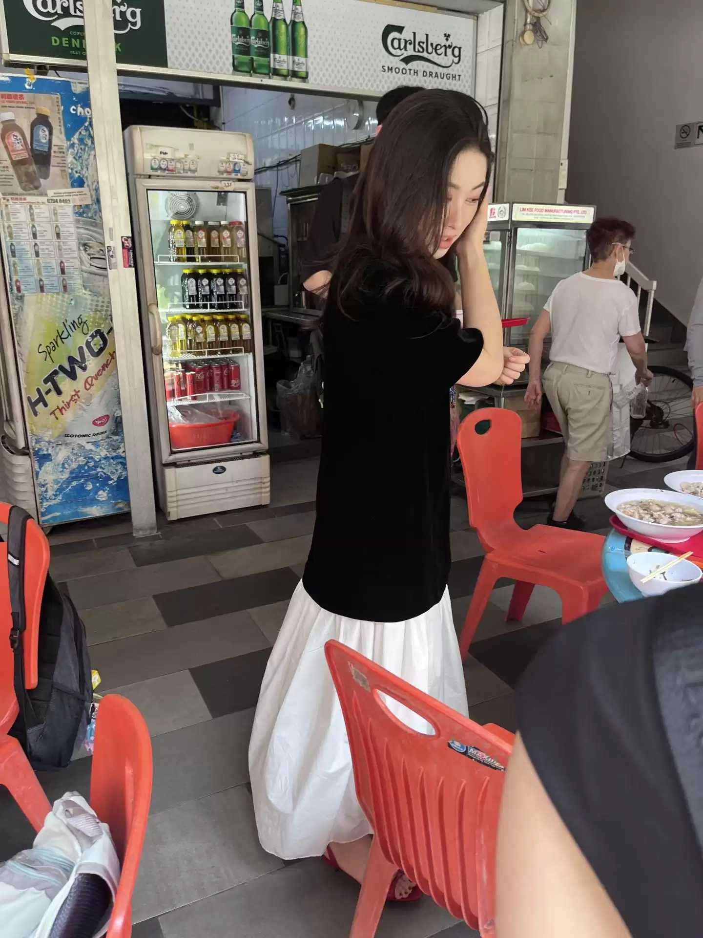 当天中午,朱珠和家人来到一家大排档品尝新加坡本土美食。她一身休闲打扮,既随性又不失时尚,下身穿着一条白色裙子,脚踩凉鞋,微卷长发随意披在肩上,整个人看上去非常放松,文艺范儿十足!