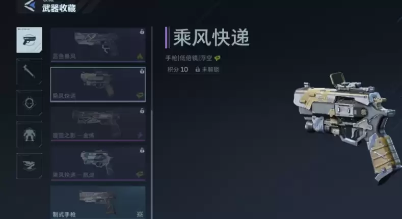 “苍色风暴”也是游戏中的一把特色手枪。它不仅具备基础的射击能力,在对战过程中还能为主武器恢复弹药。在这种设定下,主武器在游戏中的循环使用率会更高。“乘风快递”同样是值得推荐的一把手枪,虽然它也是低倍镜对战武器,但有一个独特优势:使用手枪后,角色会向相应方向快速冲刺。如果与对手距离较近,开火后角色还会被后坐力弹开,非常适合利用这个特性来对抗BOSS,不仅能快速位移,还能借助枪械特性,让自己与BOSS保持较远的距离。