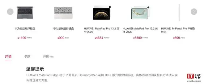 IT之家注意到,目前MatePad Edge更详细的HarmonyOS 6升级时间已经公布。华为官方显示,该机型将于2月开启HarmonyOS 6花粉Beta版升级尝鲜,具体活动时间及报名方式以实际推送为准。