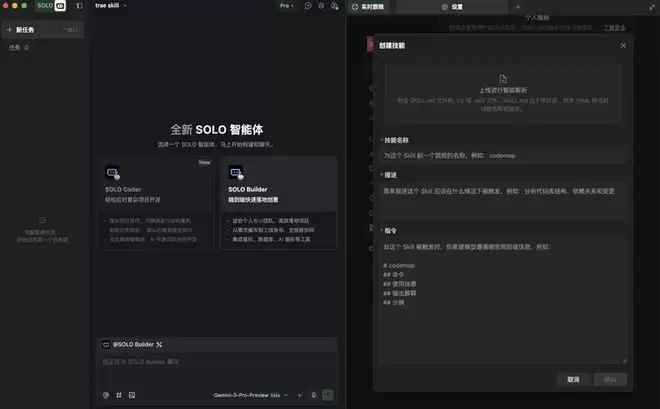 很多强大的生产力工具,往往倒在“配置复杂”的最后一公里。但 TRAE 这一次做得足够彻底,它把 Skills 的创建和使用过程,简化到了小白也能轻松上手。你不需要去学习晦涩的 JSON 格式,也不必成为 Markdown 语法专家。