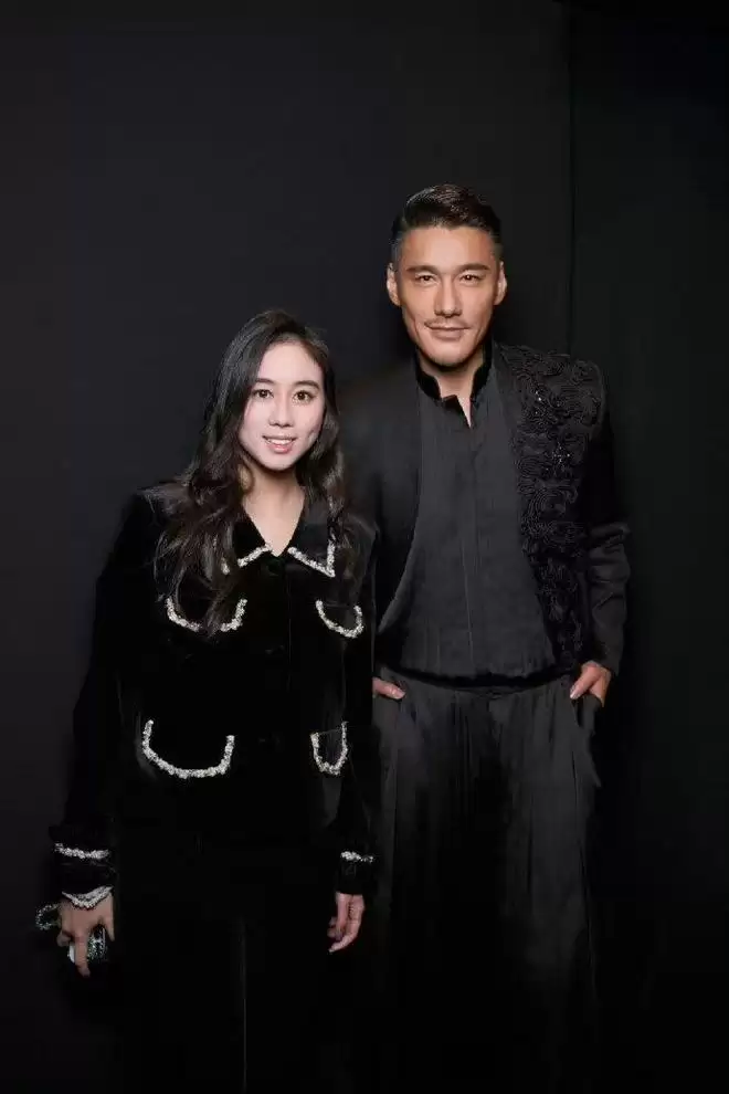 何超欣与胡兵合影,属于俊男美女的组合。