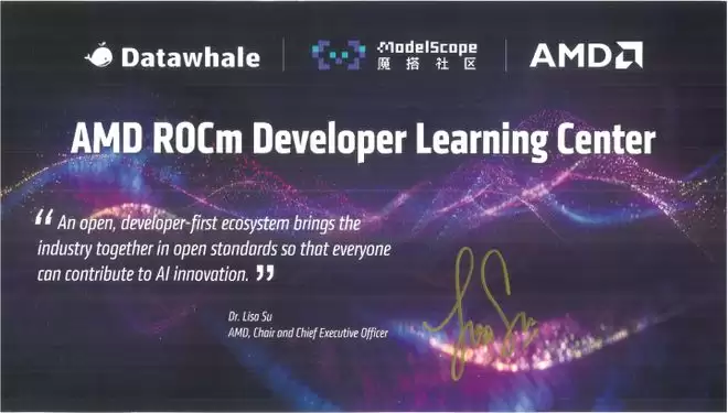 以与AMD的合作为例。当AMD推出新的AI软硬件技术,Datawhale社区的内容和学习,让全球开发者第一时间体验新技术。对AMD来说,这是最高效的开发者生态建设;对学习者来说,这是免费的顶级技术学习。