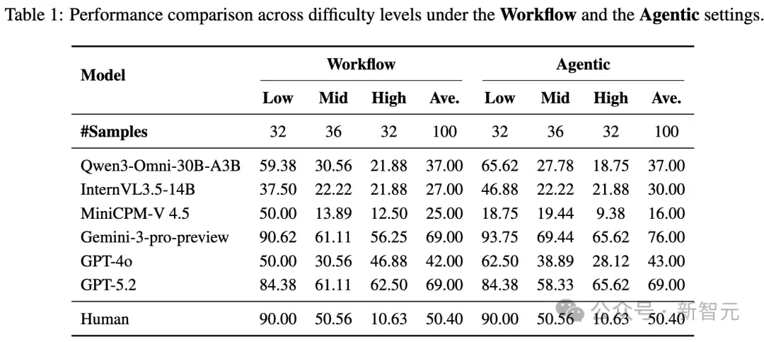 闭源模型:GPT-5.2, GPT-4o, Gemini-3-pro-preview开源模型:Qwen3-Omni-30B-a3b, InternVL3.5-14B, MiniCPM-V 4.5核心发现与洞见