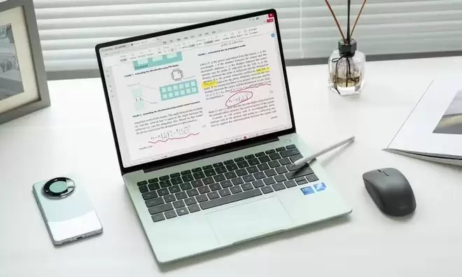 在 AI 方面,它完整支持 AI 概要、AI 空间等核心功能,帮助用户在复杂的职场环境中提升效率;不仅如此,其搭载的华为鲨鱼鳍风扇,经过 AI 参与设计,在同噪音下风扇风量提升 40%,保证了高性能释放下的冷静运行。此外,长达 70Wh 的大电池与 40W 反向充电功能,缓解了移动办公的续航焦虑。