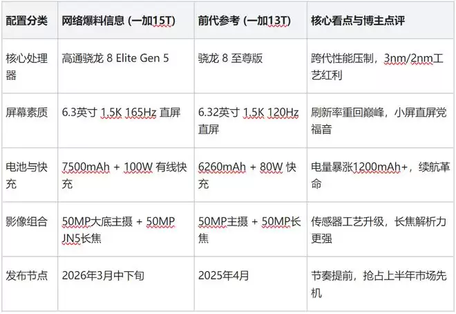 但从目前曝光的一加15T参数来看,一加这次似乎想通过技术堆叠,彻底打破这个行业魔咒,这也是期待值较高的地方。