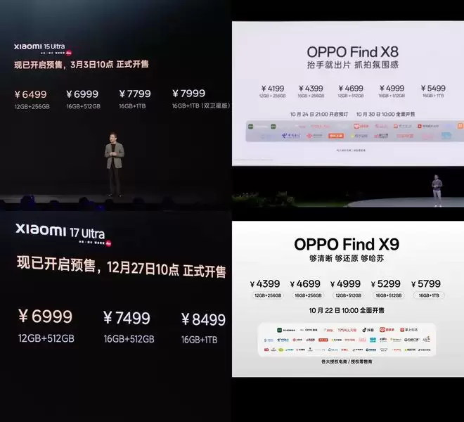 在存储价格猛涨的2025年,不少厂商的旗舰机型都进行了一定的价格上调,尤其是大容量存储版本涨价幅度更大,比如小米17 Ultra 16GB+1TB版本相比上代同规格机型贵了700元,vivo X300系列512GB、1TB版本相比上代贵了300元,OPPO Find X9系列512GB、1TB版本也比上代贵了300元。