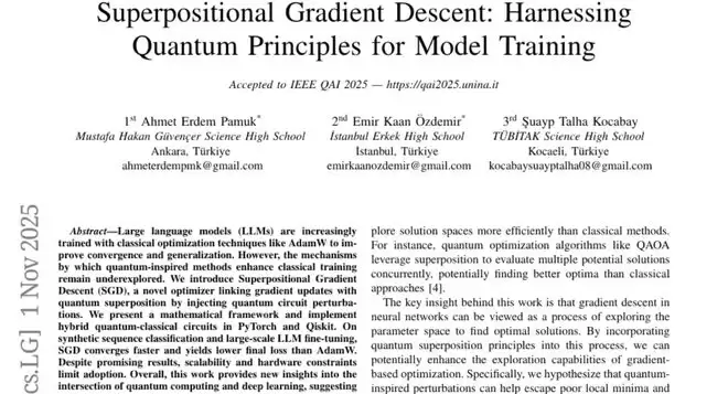 这项由土耳其三所知名高中的学生团队完成的突破性研究,于2025年被IEEE量子人工智能会议(IEEE QAI 2025)正式接受发表。研究团队包括来自安卡拉穆斯塔法·哈坎·居文切尔科学高中的艾哈迈德·埃尔代姆·帕穆克、来自伊斯坦布尔埃尔凯克高中的埃米尔·卡安·厄兹德米尔,以及来自科贾埃利TUBITAK科学高中的苏艾普·塔尔哈·科卡巴伊。对这项研究感兴趣的读者可以通过论文编号arXiv:2511.01918v1查询完整内容。