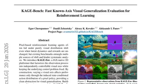 当我们玩电子游戏时,角色外观、背景场景或光线效果发生变化,人类玩家通常能很快适应,继续完成任务。但对于人工智能来说,这种看似简单的视觉适应能力却是一个巨大挑战。来自莫斯科MIRIAI研究院和认知AI系统实验室的研究团队在2026年1月21日发表了一项突破性研究,开发出名为KAGE-Bench的超高速视觉智能测试平台。这项研究以论文编号arXiv:2601.14232v1的形式公开发表,为我们理解和改进AI的视觉适应能力提供了全新工具。