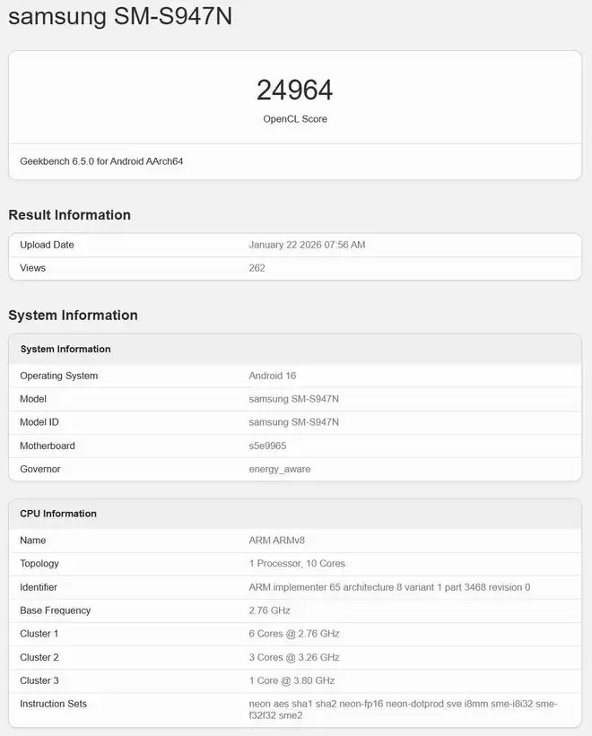 1月23日,知名科技媒体Wccftech发布报道,透露三星首款采用2nm GAA制程的Exynos 2600芯片再度现身GeekBench跑分库。在OpenCL测试中,该芯片取得了24964的高分,这比高通为笔记本设计的骁龙X Elite芯片的20492分高出约21.8%。