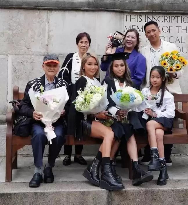 洗米华女儿晒博士毕业照,全家合影洗米嫂钻戒亮眼
