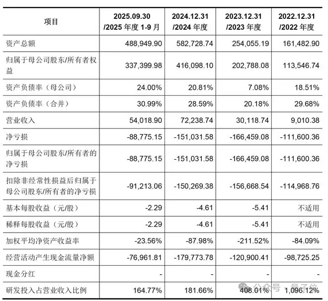 2025年1–9月:净亏损约8.87亿元2024年:净亏损约15.1亿元2024年:净亏损约16.6亿元2024年:净亏损约11.2亿元