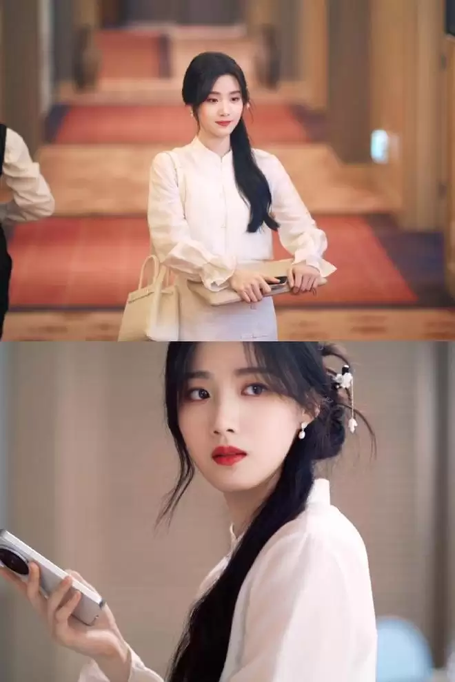 卢昱晓在这部剧的职场穿搭,都是打工人能够借鉴的经典款,温柔又不失利落,自带清冷韩剧滤镜。温柔长卷发蓬松又灵动,戴着耳机的模样清爽干净,落落大方的气质简直就是校园文女主本人。