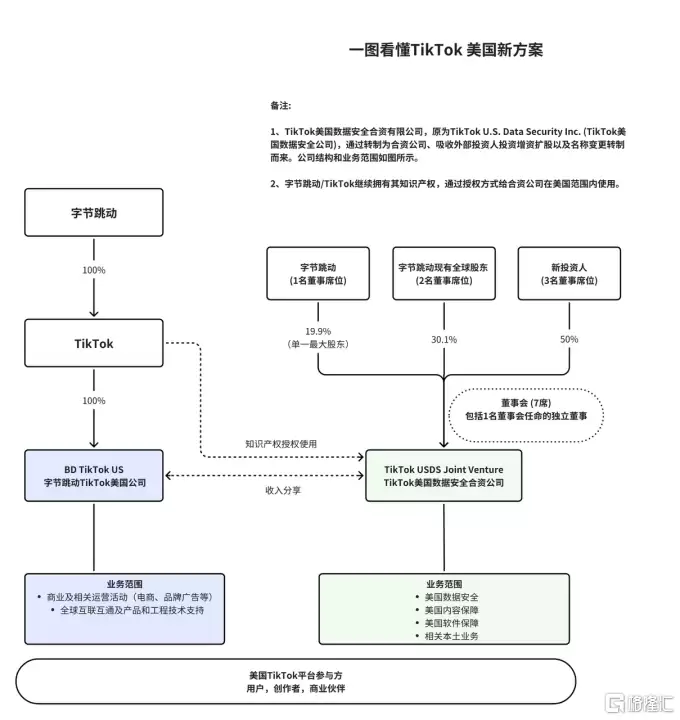 上述公司业务安排,意味着TikTok美国方案已正式落地,超过2亿美国用户得以继续使用TikTok。相关公司的设立及业务划分,与此前国内媒体披露的方案内容完全一致。