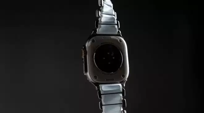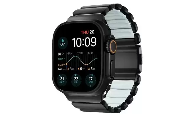 据悉,这款表带的外侧链节采用了4级钛金属打造,兼顾了坚固度与质感。内侧则使用了模压成型的氟橡胶材料,保持了柔韧性,佩戴时能更好地贴合手腕轮廓。