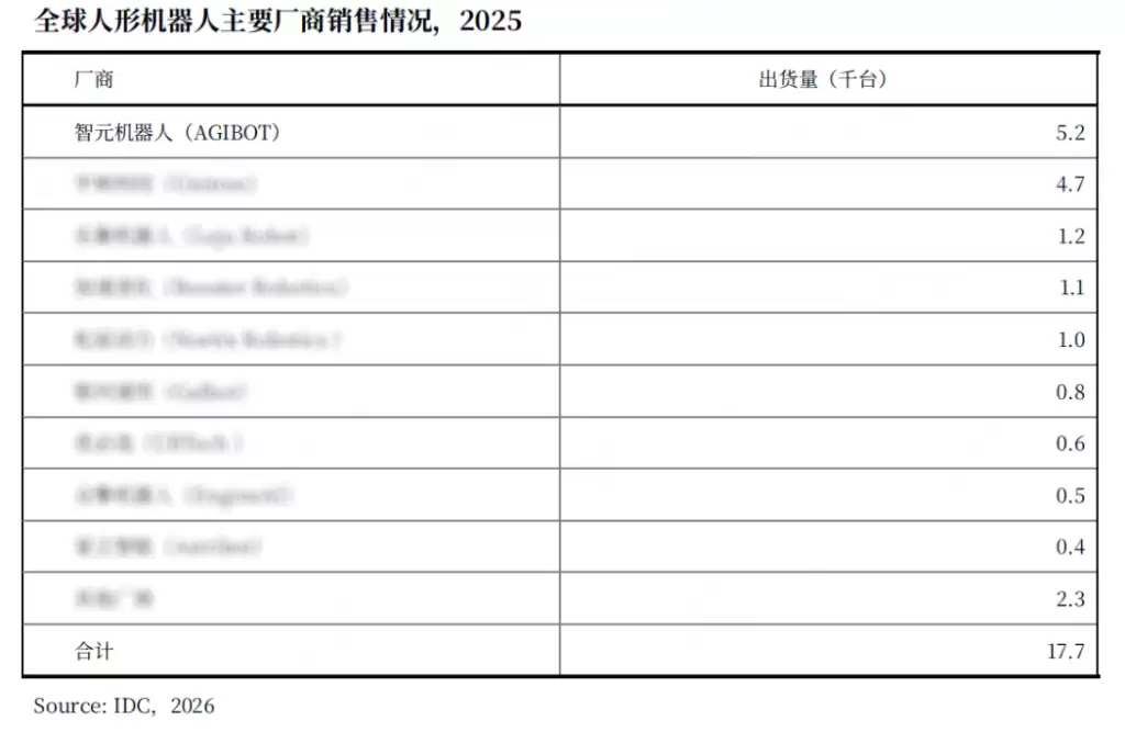 IDC预测:智元稳居人形机器人榜首,2025年出货量将达1.8万台