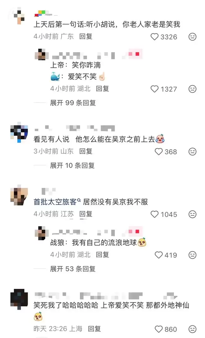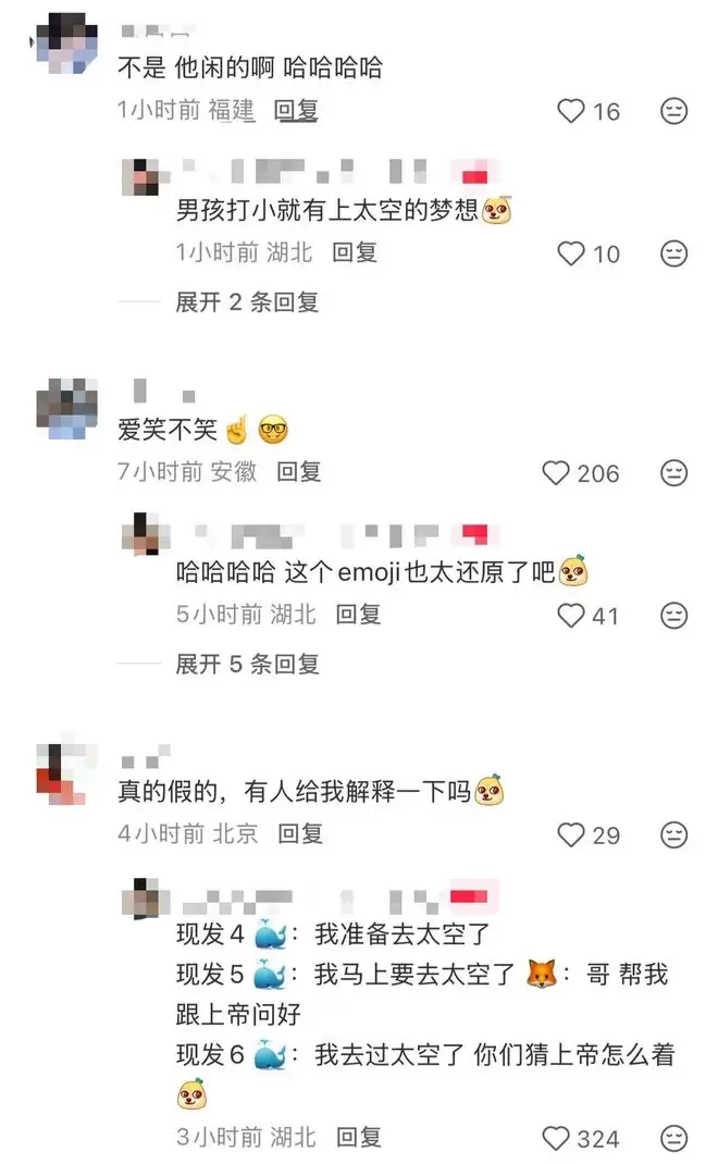 更有人说:“我不行了,去看看上帝笑没笑。”“他怎么能在吴京之前上去。”“男孩打小就有太空梦想。”