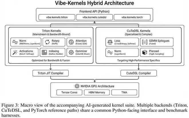 其 Vibe Kernel 包含 13 种不同类型、总计约 4.7 万行代码的自动生成内核,这些内核使用 Triton 和 CuteDSL 编写,并且具有很强的性能表现。
