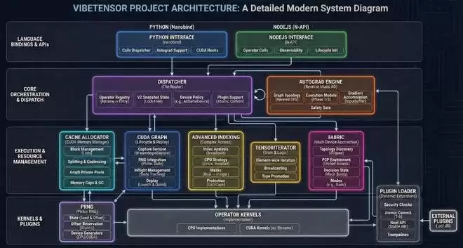 根据论文描述,VibeTensor 并不是一个简单的包装库,它拥有极其硬核的底层架构。