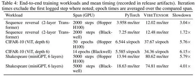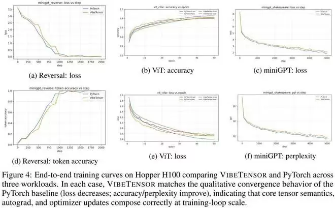 首先,性能上虽然 VibeTensor 目前还无法与 PyTorch 这种经过多年磨砺的框架抗衡(根据论文测试,部分场景慢了约 1.7 到 6.2 倍),但作为一个功能完整的技术原型,其设计的完整度令人吃惊。