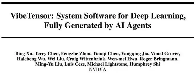 论文标题:VibeTensor: System Software for Deep Learning, Fully Generated by AI Agents论文地址:https://github.com/NVlabs/vibetensor/blob/main/docs/vibetensor-paper.pdf项目链接:https://github.com/NVlabs/vibetensor