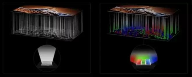 不难发现,即使是覆盖色彩最多的BT.2020也没有把整个色标覆盖。因此在BT.2020体系下,色域也是可以「溢出」的,这也是当前电视行业内色域超过100%背后的技术原理。一般来说,电视色域越高,色空间就越大,画面色彩也越不容易出现断层、过渡也更自然。